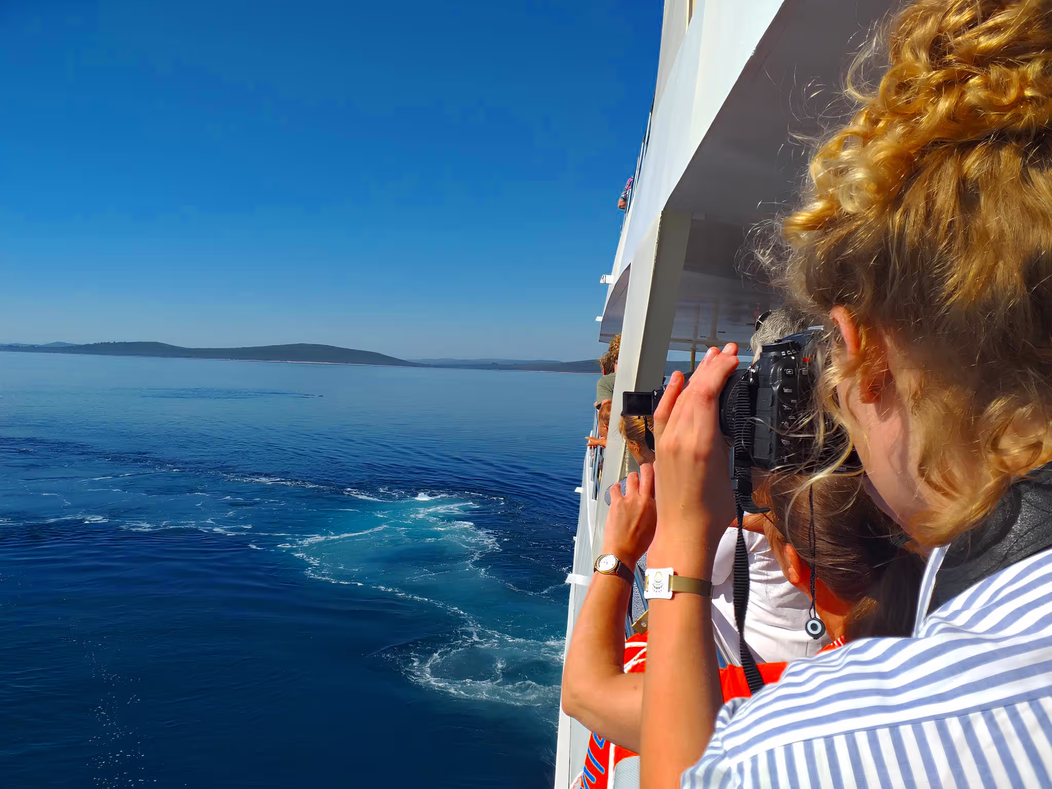 Keep your camera ready — playful dolphins often swim and jump alongside the boat, creating unforgettable photo opportunities!